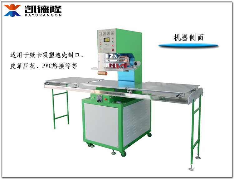 单头推盘式吸塑包装机用途:高周波单头推盘式吸塑包装机用于:工艺品焊接、饰品热合、礼品包装、玩具热合、玩具包装、玩具焊接、玩具压花、文具热合、篮球压花、文具吸塑包装、体育用品包装、PVC名片内页焊接热合、相册热合、相薄热合、眼镜盒热合、CD袋热合、鼠标垫、镜盒焊接压花等.